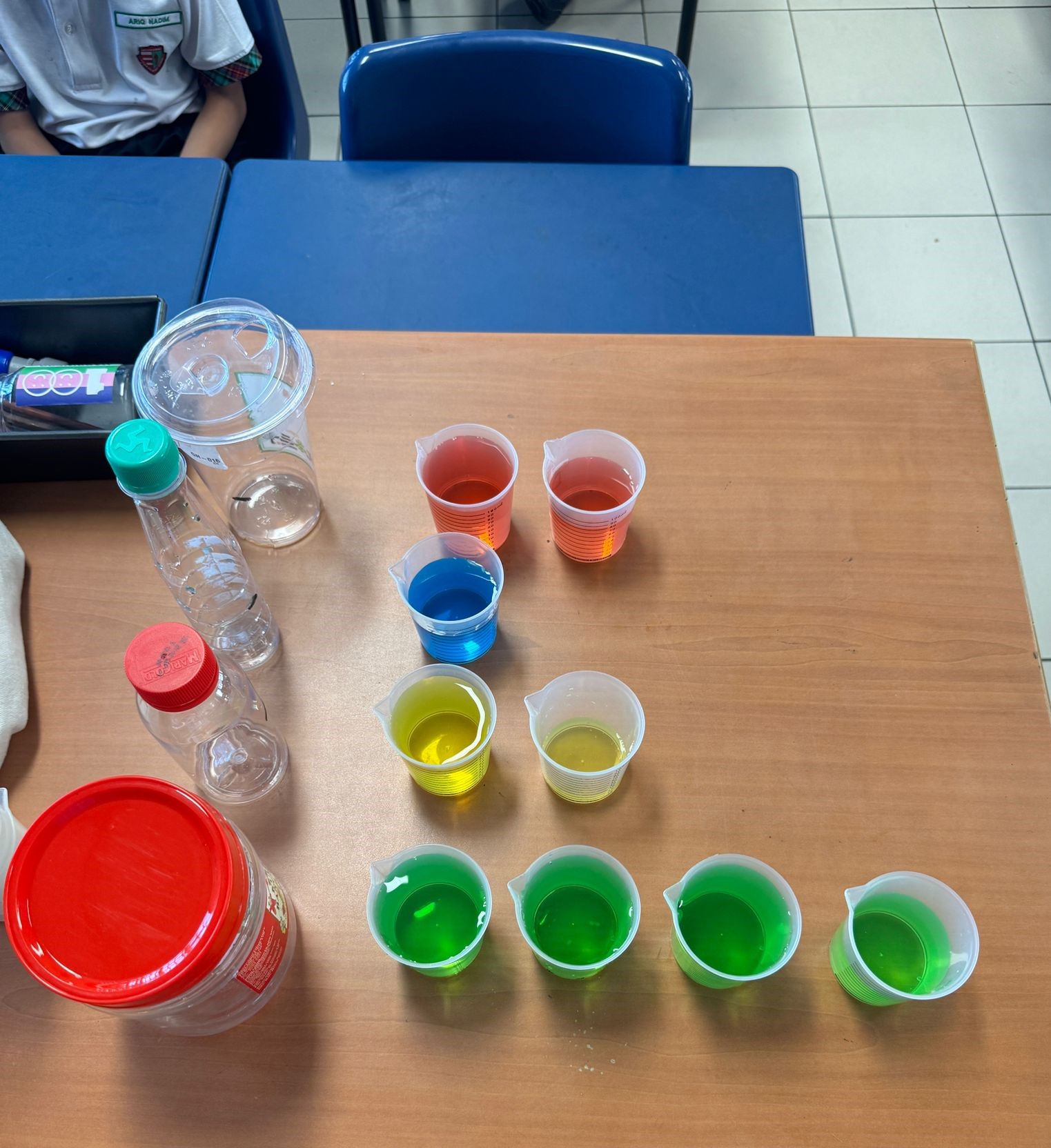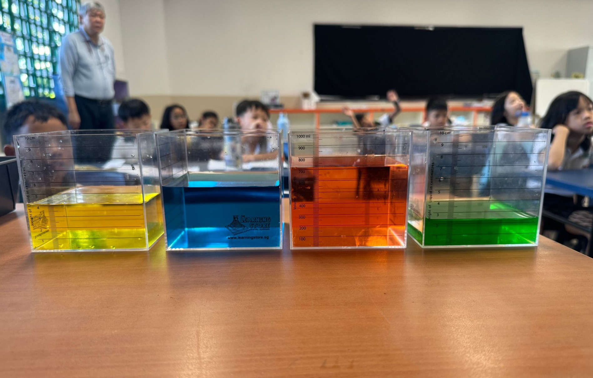 Pupils estimating and measuring the volume in various containers. |