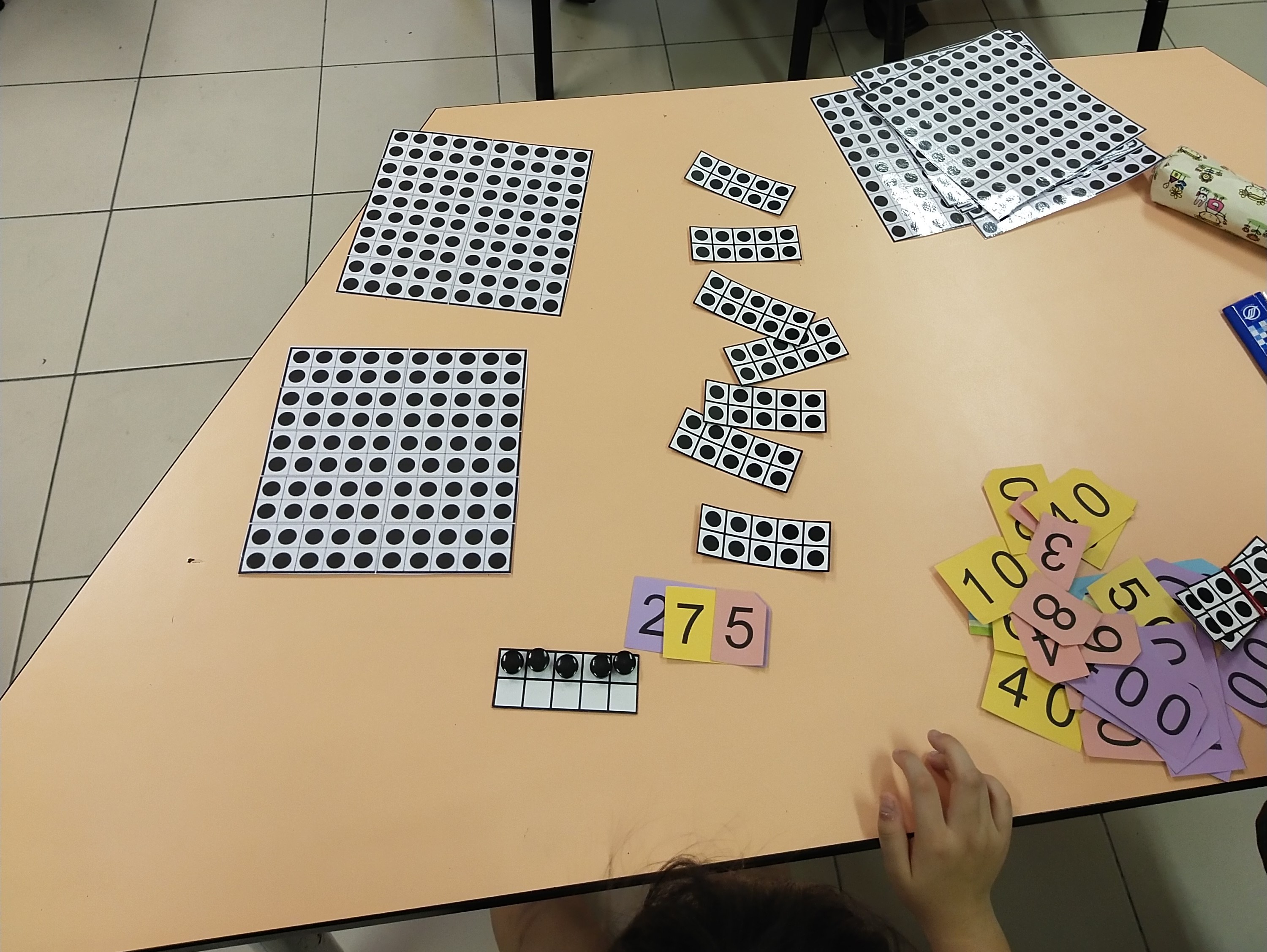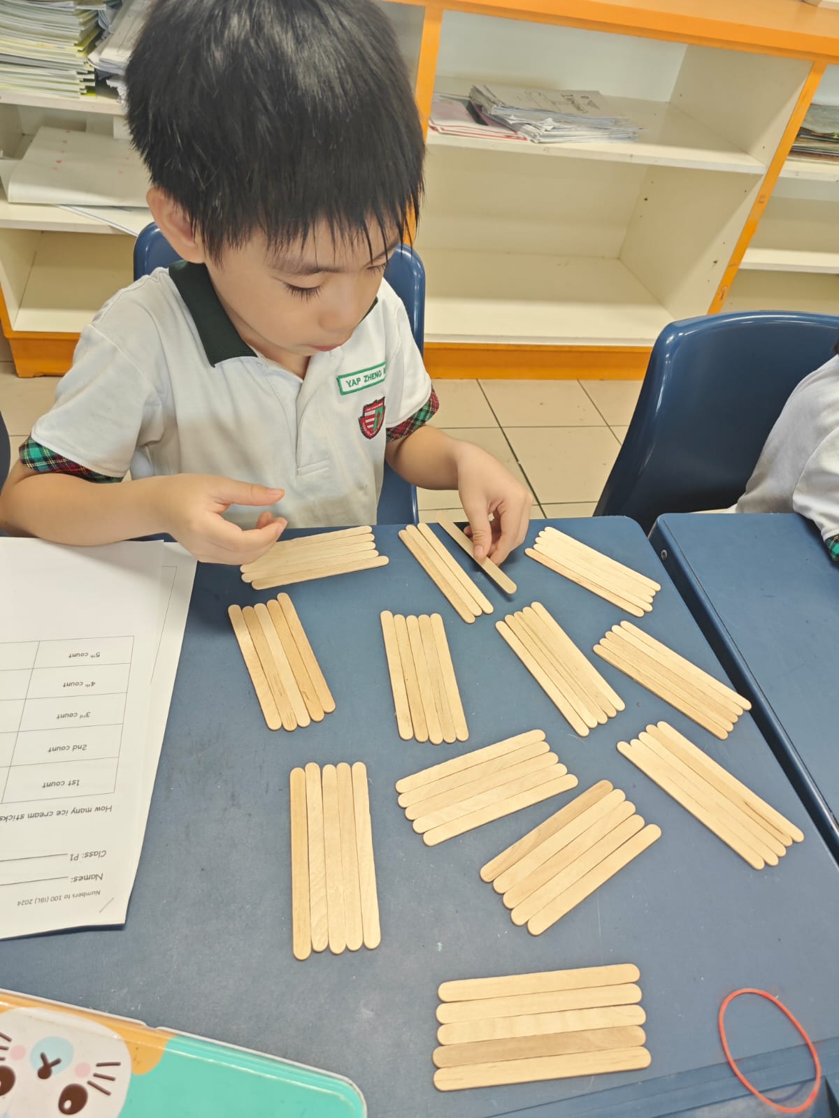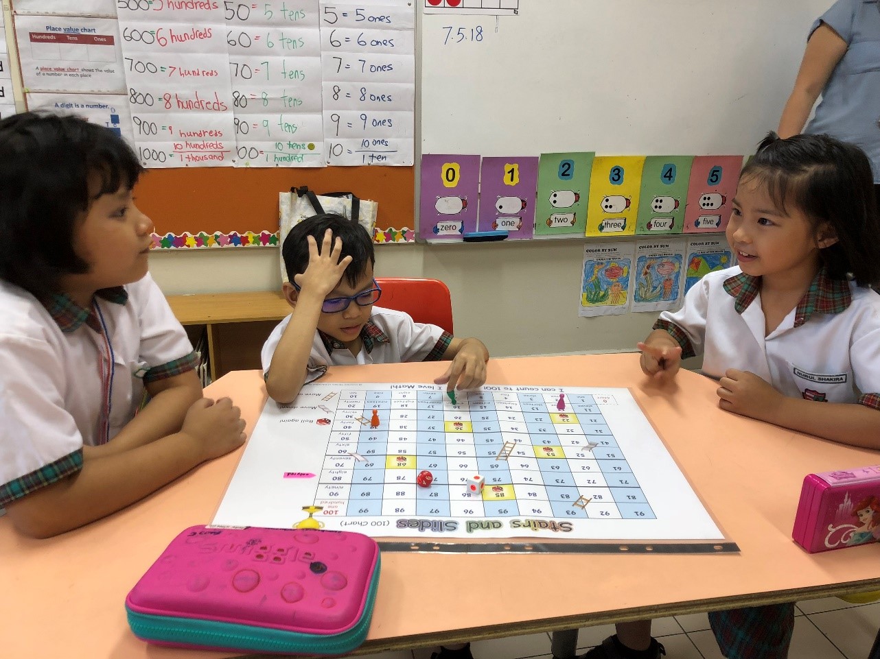 Primary 1 pupils exploring different methods of counting numbers within 100. |