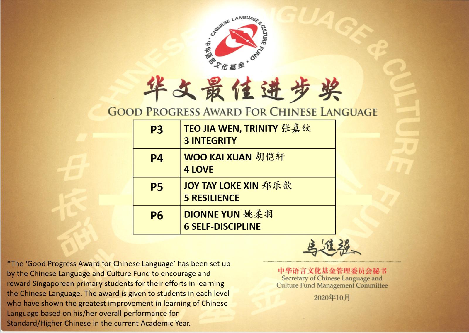 Good Progress Award for Chinese Language
